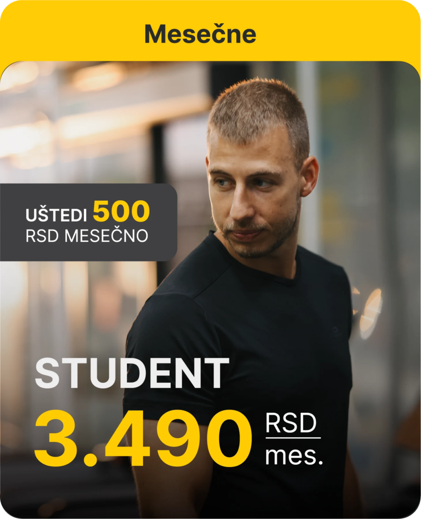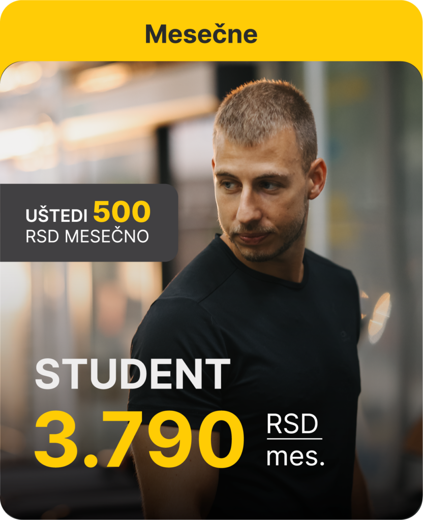 Zajednica koja razume tvoj ritam studentskog života. Treniraj povoljno, uvek uz dobru energiju i podršku.